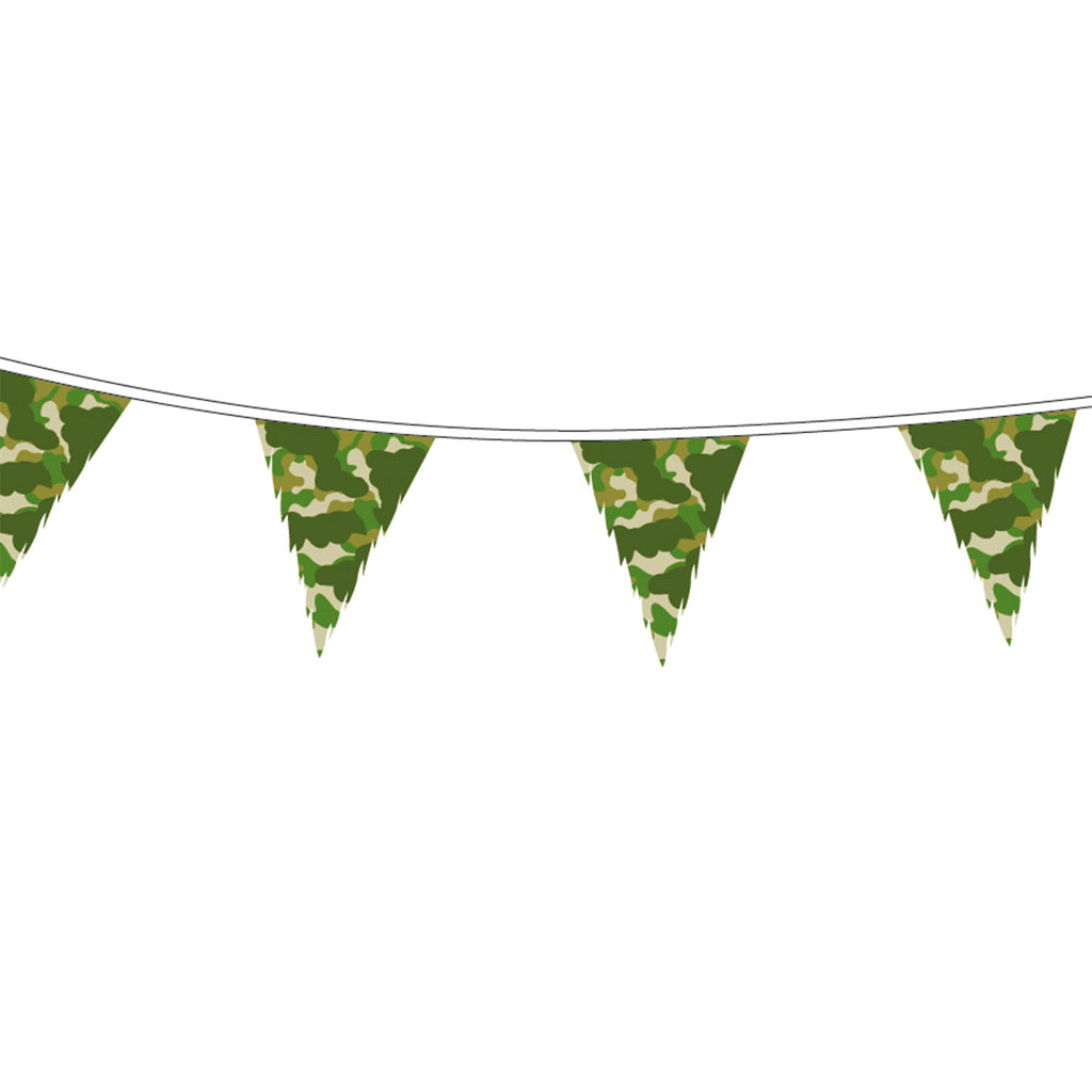 Jouw stoere feest verdient de coolste vlaggen. Deze vlaggenlijn is enkelzijdig bedrukt met coole camouflage print, 10 meter lang en bevat 15 vlaggetjes.