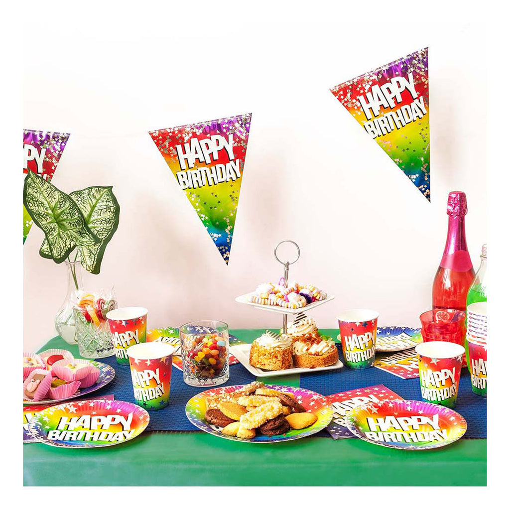 Happy Birthday' vlaggenlijn van folie, 6 meter lang in multicolor. Geschikt vanaf 14 jaar.