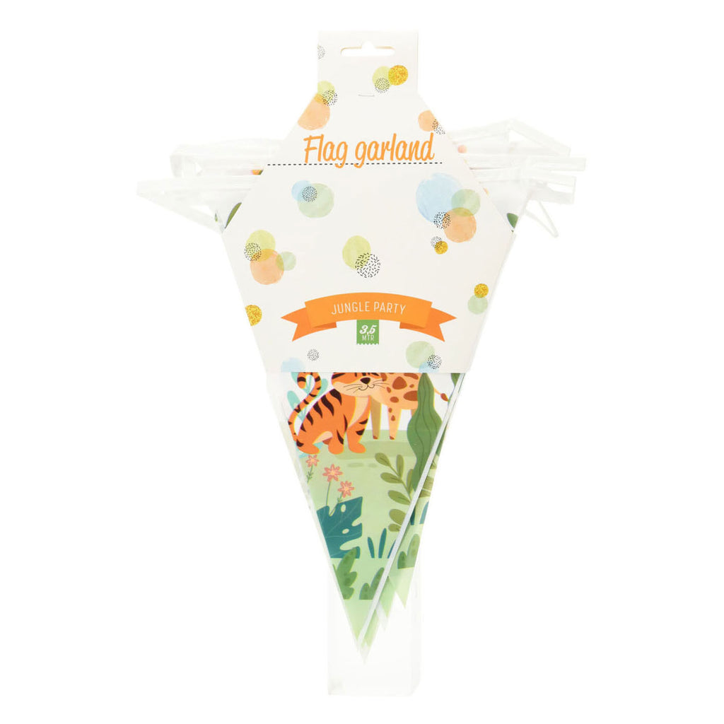 Plastic vlaggenlijn Jungledieren, 3,5mtr lang.
