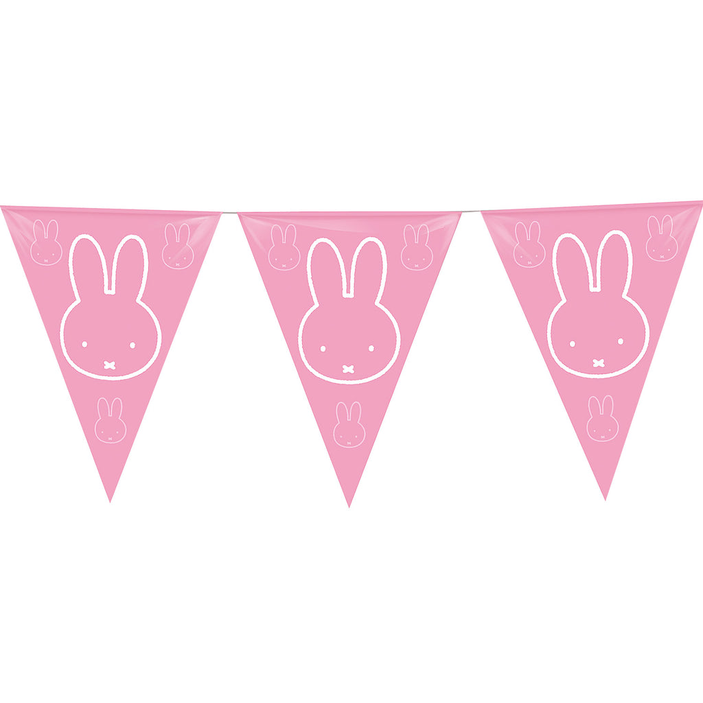 Hoera, een meisje! Wil je graag het kraamfeest goed in thema aankleden? Daar kan je deze roze vlaggenlijn van Nijntje goed bij gebruiken. Op de vlaggen staat het gezicht van Nijntje en is 10 meter lang.