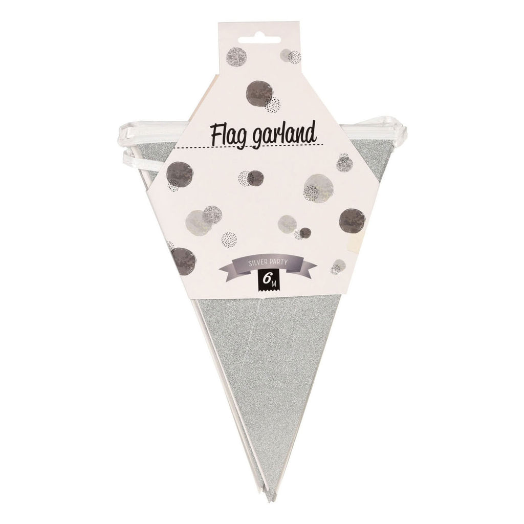 Slingerlijn met 25 papieren zilveren slingers. De lijn is 6 meter, inclusief aanloopsnoer. Geschikt voor gebruik binnen.