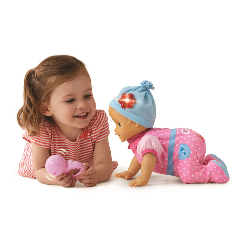 Deze schattige pop is dol op kruipen en spelen. Klap in je handen, schud de rammelaar of druk op de toetsen om Lily te laten kruipen en spelletjes te spelen. De vrolijke melodietjes en gezongen liedjes dragen bij aan nog meer speel- en kruipplezier!
