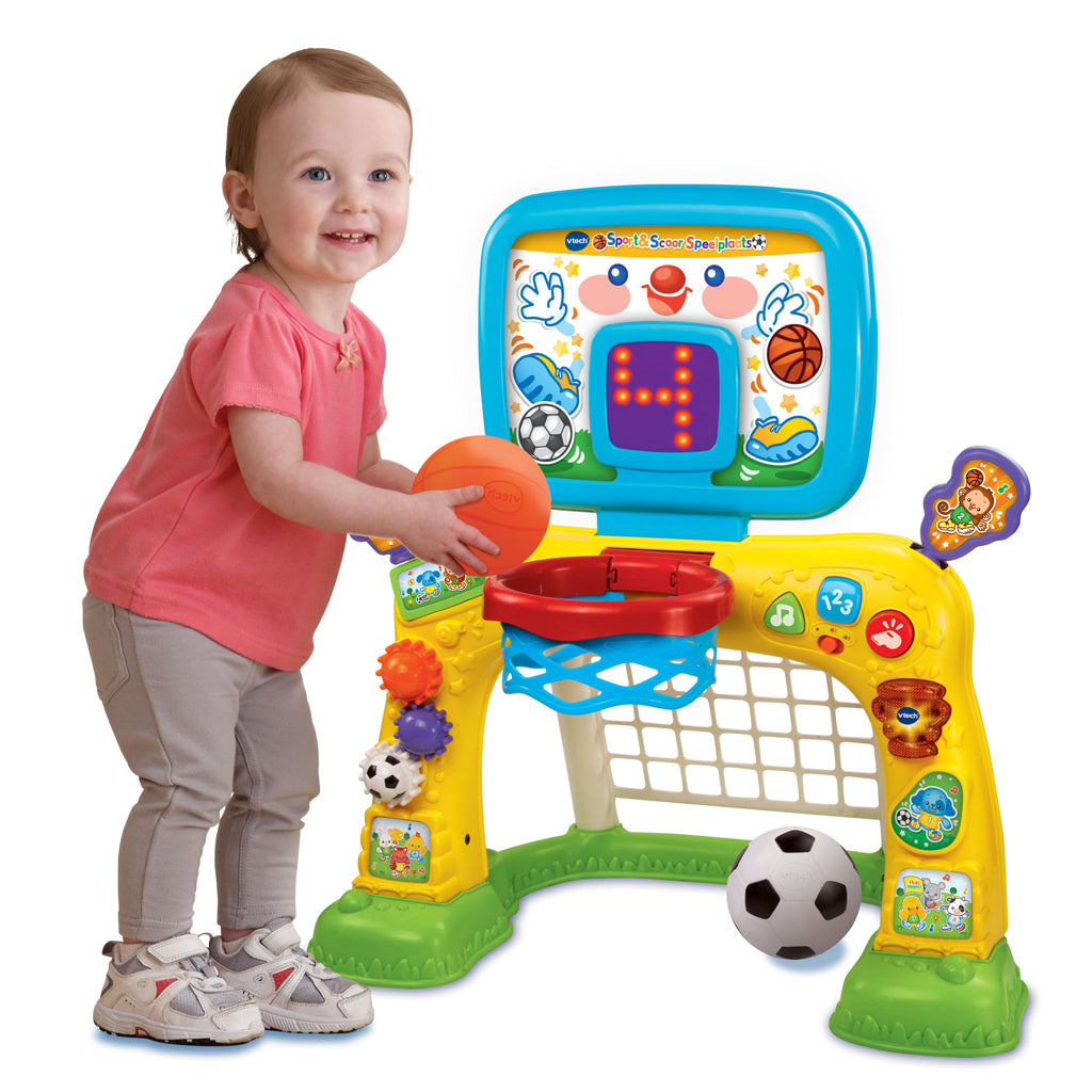 Scoor punten, leer tellen, maak kennis met vormen en nog veel meer! De sensors herkennen elk punt dat gescoord wordt, zowel in de basket als in het doel. Kijk naar de grappige animaties op het scherm, luister naar de vrolijke reacties en word de ster van het veld! Kom op! Pak een bal en scoren maar!