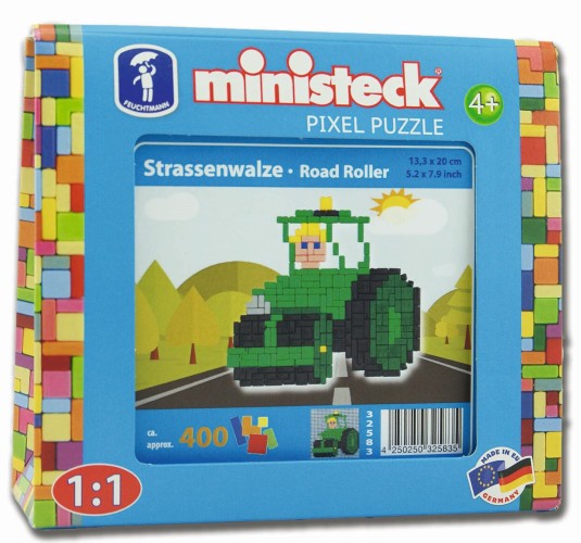 Met deze pixel puzzel van Ministeck maak jij met de circa 400 gekleurde steentjes een afbeelding van een stoer constructievoertuig, namelijk de wals. De set bestaat uit een insteekbordje van 13,3 x 13,3 cm, gekleurde Ministeck steentjes, een demontagetool en instructies. Het spelen met Ministeck stimuleert de ontwikkeling van de fijne motoriek, concentratie en creativiteit.