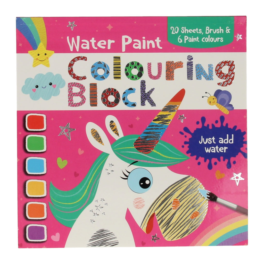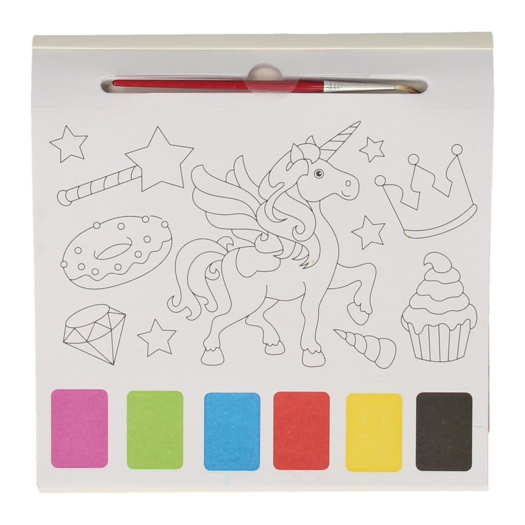 Waterverfkleurboek met 20 pagina's eenhoornkleurplaten. Je hoeft alleen maar water toe te voegen om de verf los te weken. Inclusief 6 kleuren verf en 1 kwastje. Geschikt voor kinderen vanaf 3 jaar.