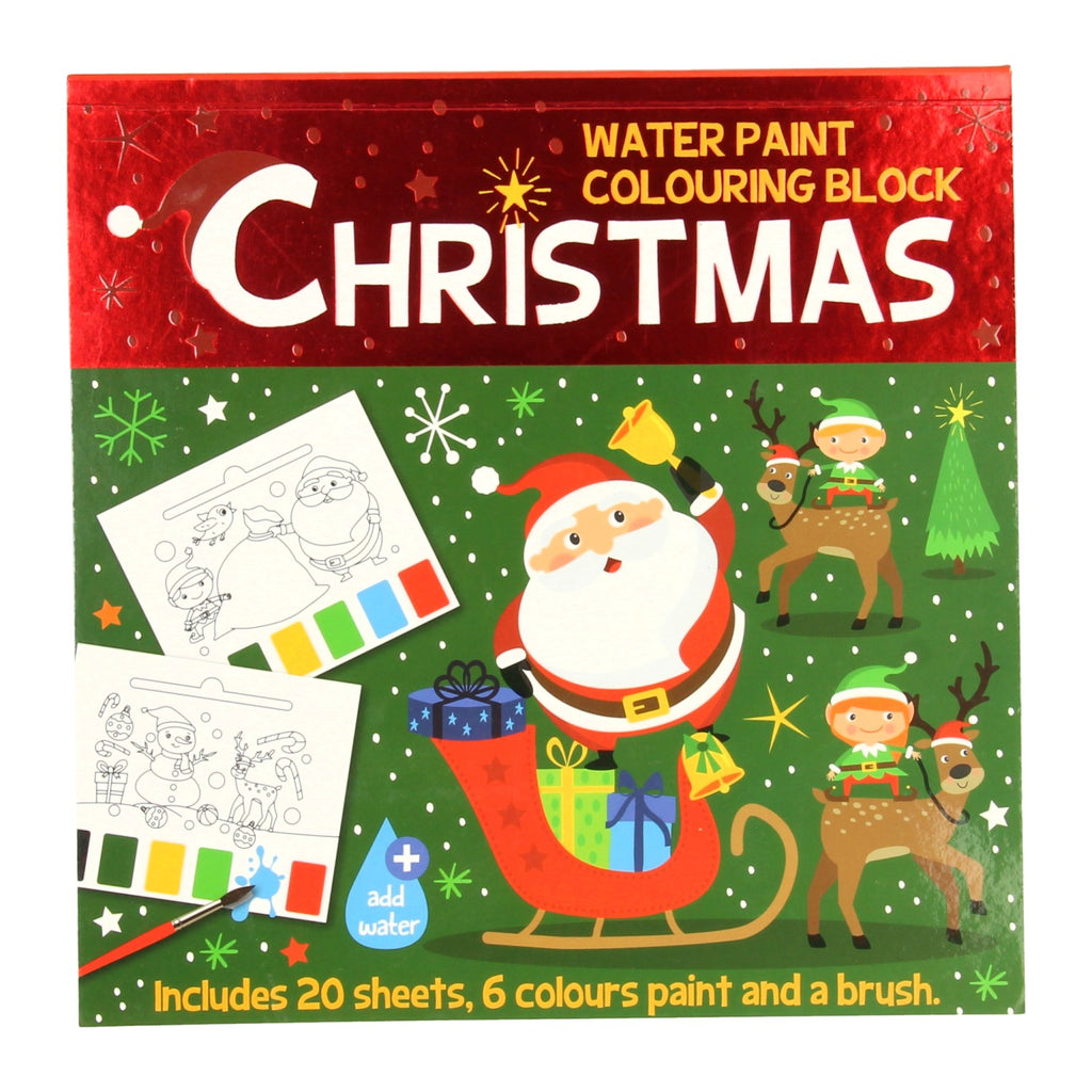 Kleurboek voor waterverf met 20 gezellige kerstkleurplaten. Onderaan de pagina's vind je papieren verfblokken: je maakt met het kwastje simpelweg de gekleurde vakjes nat om de verf los te weken! Inclusief kwastje.