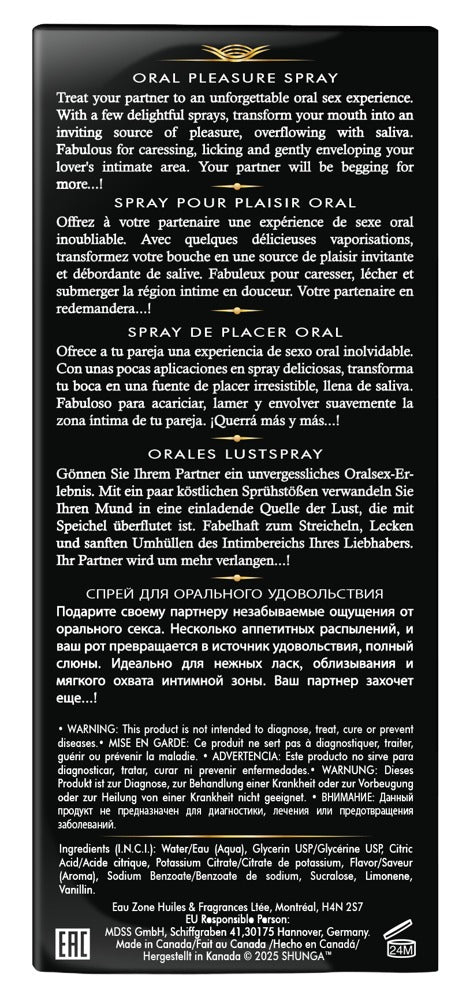 The Waves of Pleasure Exotic oral spray van Shunga verandert de mond en keel in een fruitige bron van genot voor onvergetelijke orale seks. Exotische vruchten nodigen uit tot speelse tongkunst, intiem zoenen en diep knabbelen. Gewoon in de mond/keel sprayen voor orale seks.
