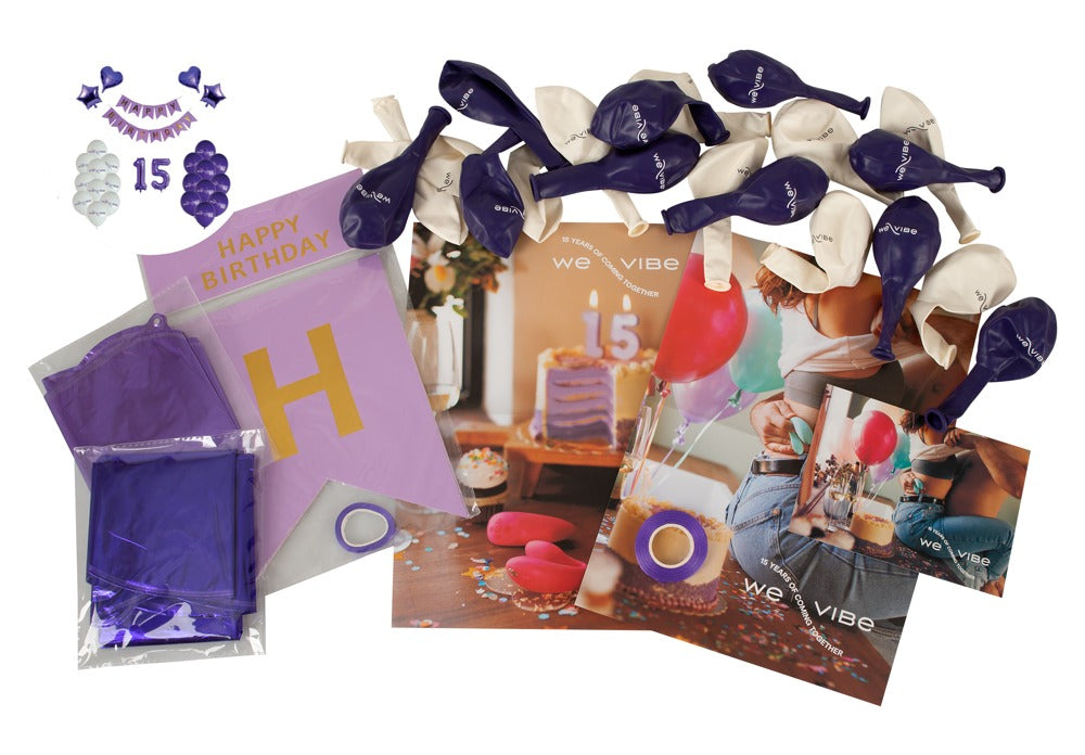 We-Vibe celebrates their 15 year anniversary with this colourful set consisting of balloons and streamers.