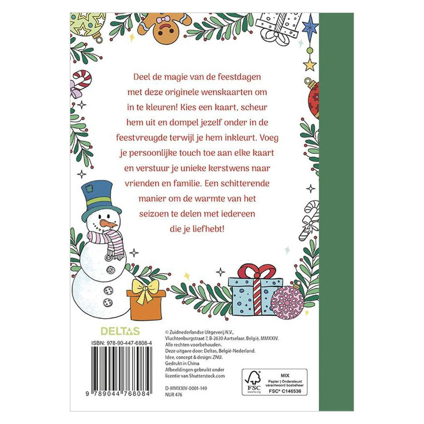 Deel de magie van de feestdagen met deze originele wenskaarten om in te kleuren! Kies een kaart, scheur hem uit en dompel jezelf onder in de feestvreugde terwijl je hem inkleurt. Voeg je persoonlijke touch toe aan elke kaart en verstuur je unieke kerstwens naar vrienden en familie. Een schitterende manier om de warmte van het seizoen te delen met iedereen die je liefhebt! Set van 20 kaarten.