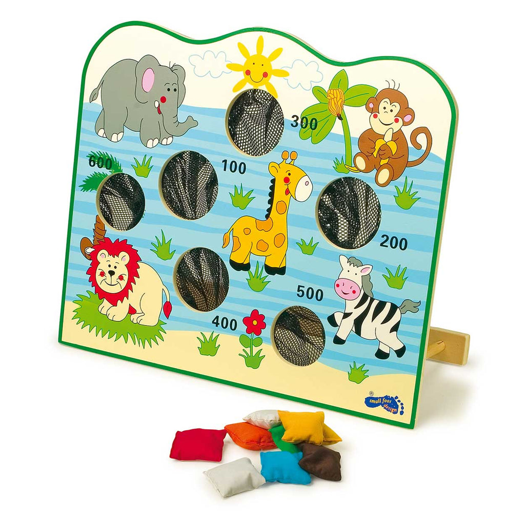 Superkleurig werpspel met vangnet, incl. werpzakjes. De gaten zijn verschillende groottes. Hoe kleiner het gat is, des te moeilijker is het om een treffer te maken. Omdat je voor de kleinere gaten meer punten krijgt is het zeker de moeite waard om het te proberen!