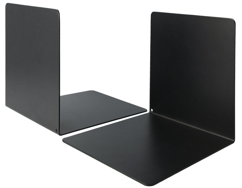 Deze handige boekensteunen van Westcott houden je boeken of tijdschriften netjes op de plaats. Door de strakke vorm en afgeronde hoeken hebben deze boekensteunen een tijdloos design. Met deze boekensteunen creëer je op een stijlvolle manier de orde in het schap en/of plank. Afmeting: 125x140x140mm. Metaaldikte boekensteun: 1,2mm. Kleur: Zwart