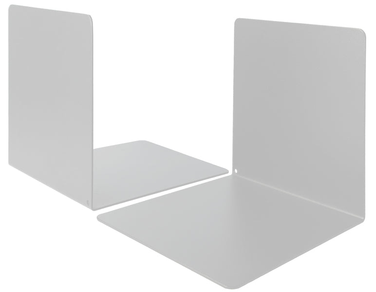 Deze handige boekensteunen van Westcott houden je boeken of tijdschriften netjes op de plaats. Door de strakke vorm en afgeronde hoeken hebben deze boekensteunen een tijdloos design. Met deze boekensteunen creëer je op een stijlvolle manier de orde in het schap en/of plank. Afmeting: 125x140x140mm. Metaaldikte boekensteun: 1,2mm. Kleur: Licht grijs.