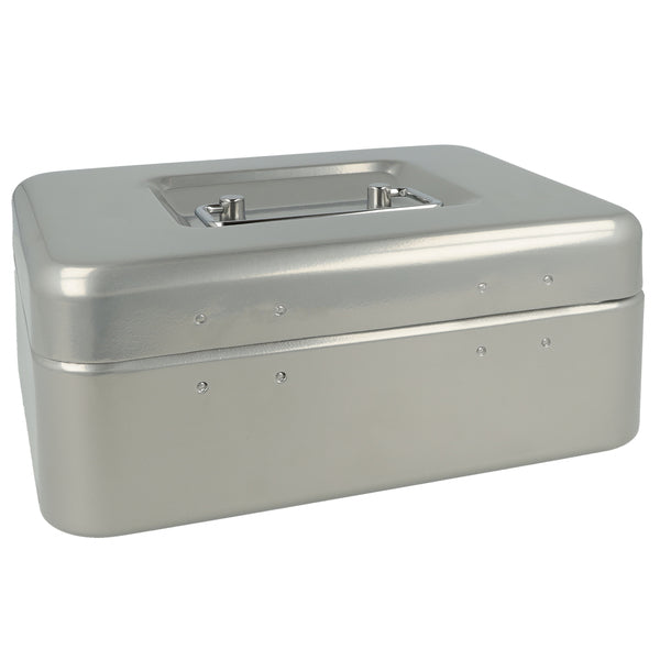 Met deze geldkist bergt u uw geld of waardevolle spullen veilig op. Deze geldkist gemaakt van staal wordt geleverd met 2 sleutels en heeft een kunststof inzet met 3 vakken voor munten. Doordat de geldkist een hangreep heeft die in de deksel valt kunt u de kist makkelijk opbergen. Afmeting: 200x161x89mm. Kleur: zilver.