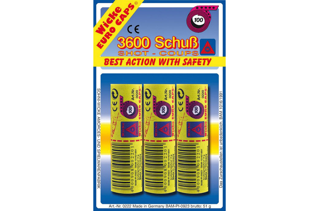 Wicke navulverpakking voor je klappertjespistool.3 rollen enelke rol bevat 12 x 100 schoten, 3600 schoten in totaal!
