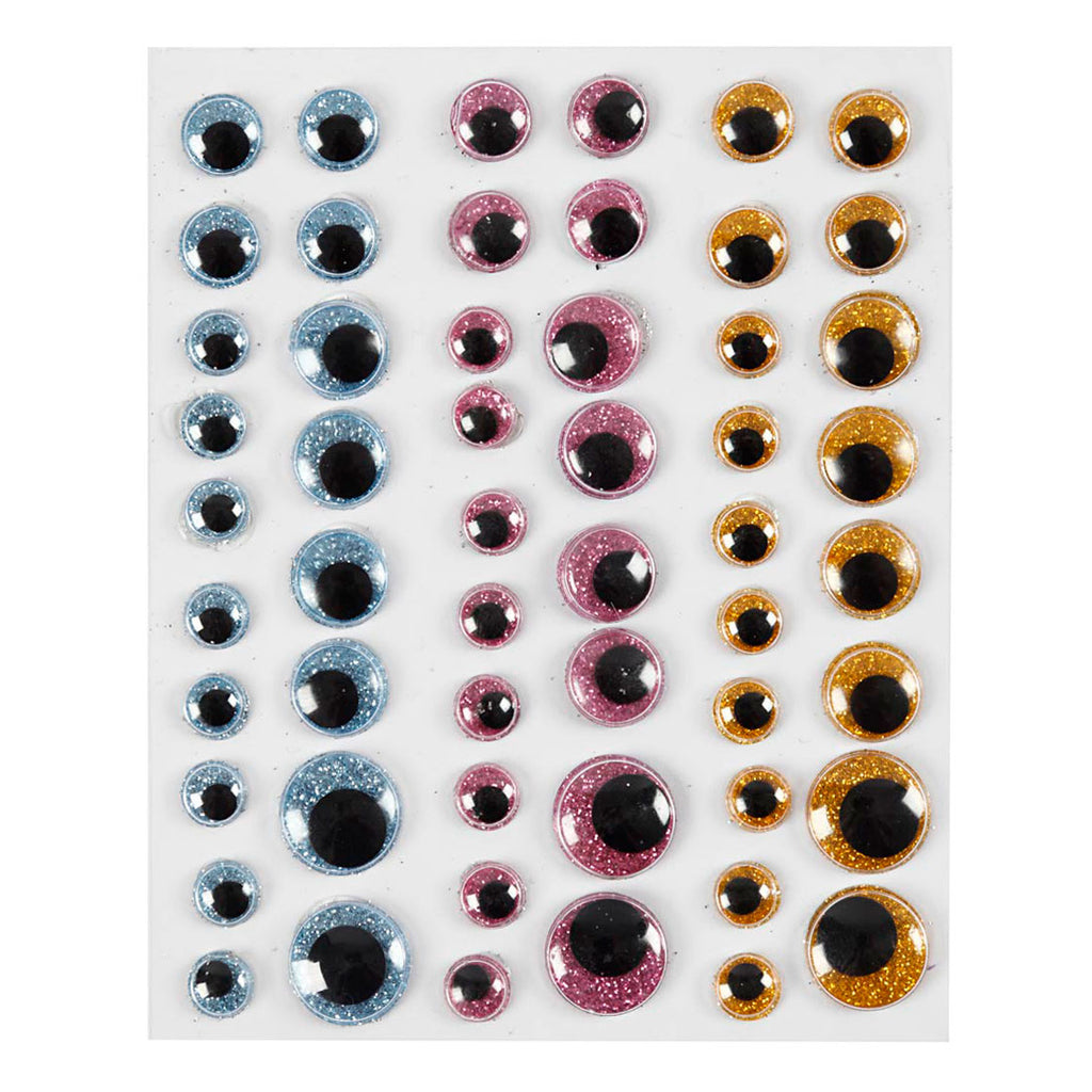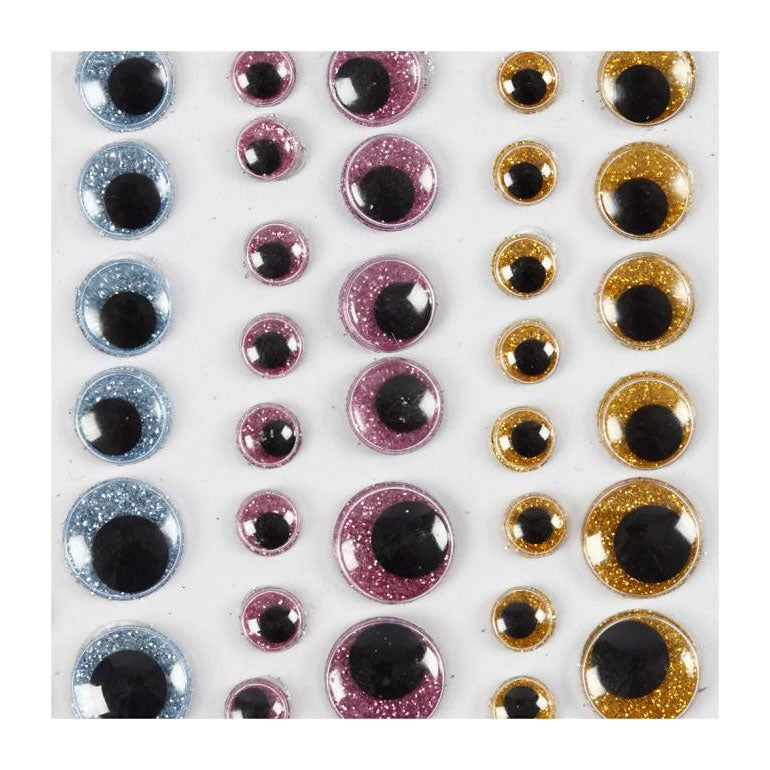 Breng je creatieve projecten tot leven met deze opplakbare wiebelogen in verschillende maten en kleuren. Met zwarte, bewegende pupillen achter doorzichtig plastic kunnen de wiebelende ogen op allerlei ondergronden gebruikt worden en om allerlei denkbare figuren te maken..Gebruik de zelfklevende ogen op allerlei ondergronden zoals karton, papier, katoenballen, karton, pom-poms, Silk Clay figuren, etc.