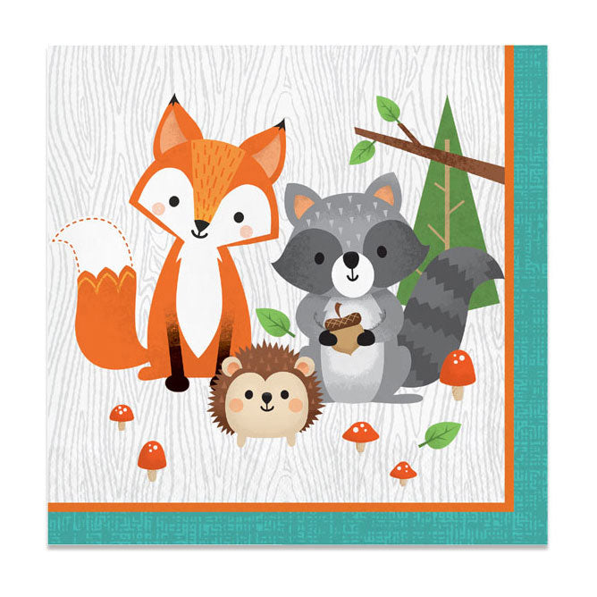 Papieren servetten in thema Wild One (bosdieren). De servetten zijn 33x33 cm groot en zitten per 16 stuks verpakt.