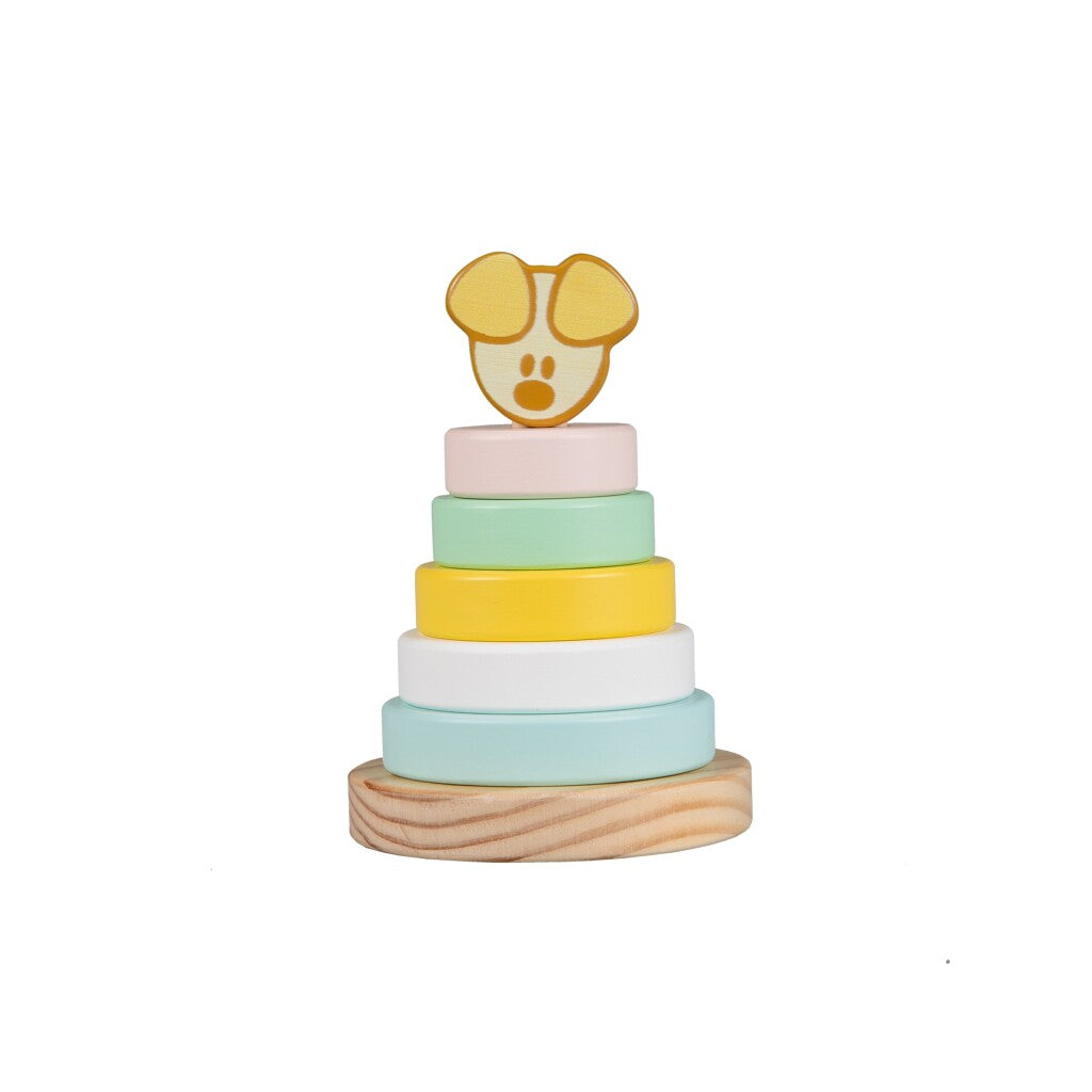 Stapel de 5 houten ringen van deze Woezel en Pip ringpiramide in de juiste volgorde. De piramide bestaat uit een blank houten basis, 5 ringen en een blokje in de vorm van Pip. Die mag bovenop de piramide worden gezet! Dit speelgoed stimuleert de zintuigen, de hand-oogcoördinatie en helpt bij de ontwikkeling van de fijne motoriek. Geschikt voor kinderen vanaf 10 maanden.