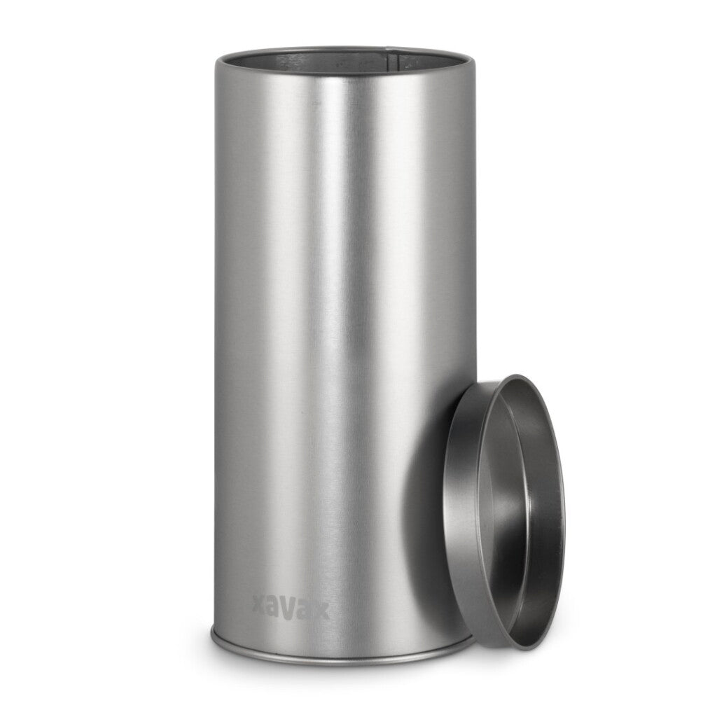 - Padblik met veel ruimte, zodat er plaats is voor maximaal 20 thee- of koffiepads in het blik ? of voor ca. 300 g koffiebonen of ca. 340 g gemalen koffie en espressopoeder