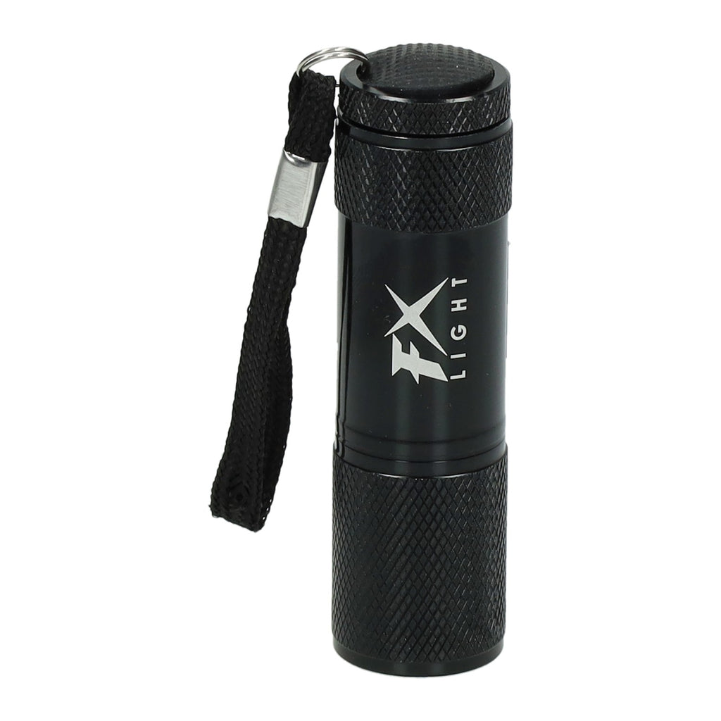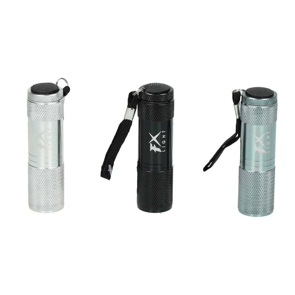 Compacte LED-zaklamp van Koopman International, gemaakt van aluminium met heeft een lengte van 8 cm. De zaklamp werkt op drie AAA-batterijen (niet inbegrepen).