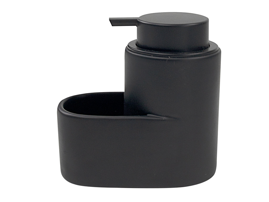 Keramische zeeppompje met zeepbakje. Houd je keuken of badkamer netjes en stijlvol met deze zwarte zeeppomp met zeepbakje. Afmeting:12,7 x 13,3 x 7,8 cm.