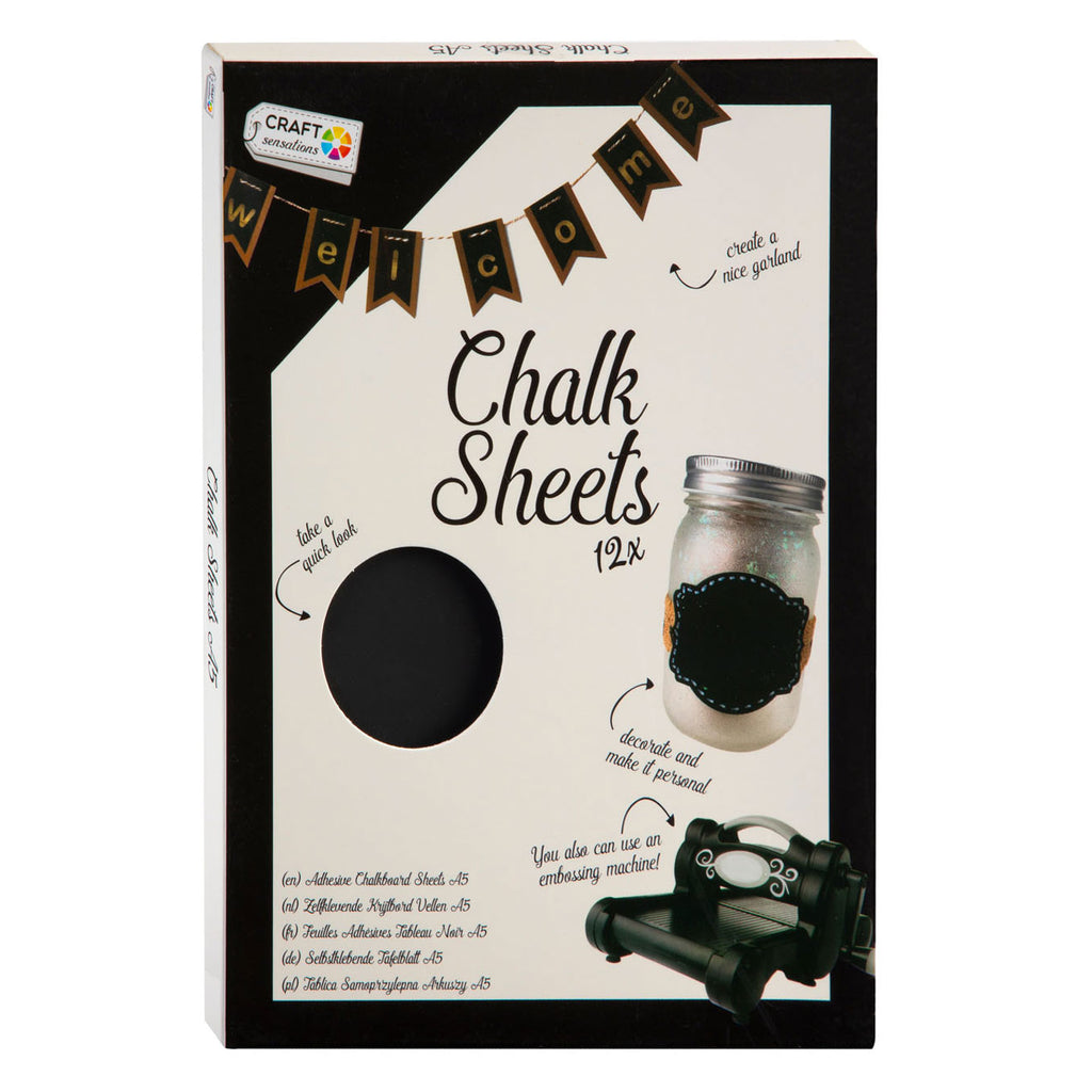 Je kunt je fantasie en creativiteit de vrije loop laten met deze zelfklevende krijtbord vellen in een A5 formaat. Inhoud: 12 vellen.