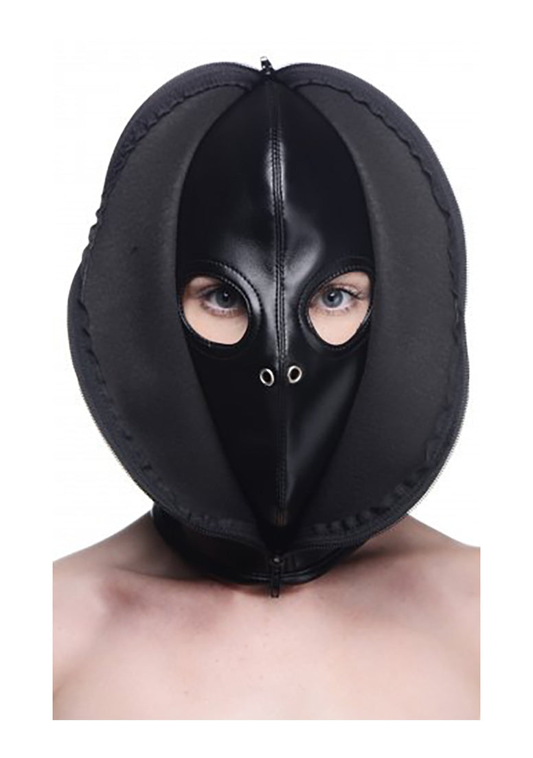 Verduister de zintuigen met deze Zip Front Bondage Hood! Deze kap ontzegt de zintuigen en verblindt je sub met gemak, waardoor het eenvoudig wordt om kinky objectiveringsspelletjes te spelen. Met twee ooggaten en een paar ademhalingsgaten in de binnenkap zodat je partner kan zien wat er komt, alleen voor jou om de voorkant dicht te ritsen om hun zicht weg te nemen. De binnenkap is gemaakt om ademend te zijn, zelfs als de buitenkap is geritst dicht, terwijl de vetersluiting het gemakkelijk maakt om de perfecte pasvorm te vinden voor alle hoofdvormen en -maten. Ontzeg je geliefden het zicht zonder ze ongemakkelijk te maken en transformeer ze in een object voor je plezier! De binnenvoering is zacht en flexibel met een buitenkant gemaakt van lichtgewicht PU-leer voor een comfortabele pasvorm en textuur voor stressvrije langdurige sessies. Combineer deze capuchon met andere Bondage-accessoires zoals polsboeien, spreidstangen en floggers voor een echte kerker-esthetiek en -ervaring!
